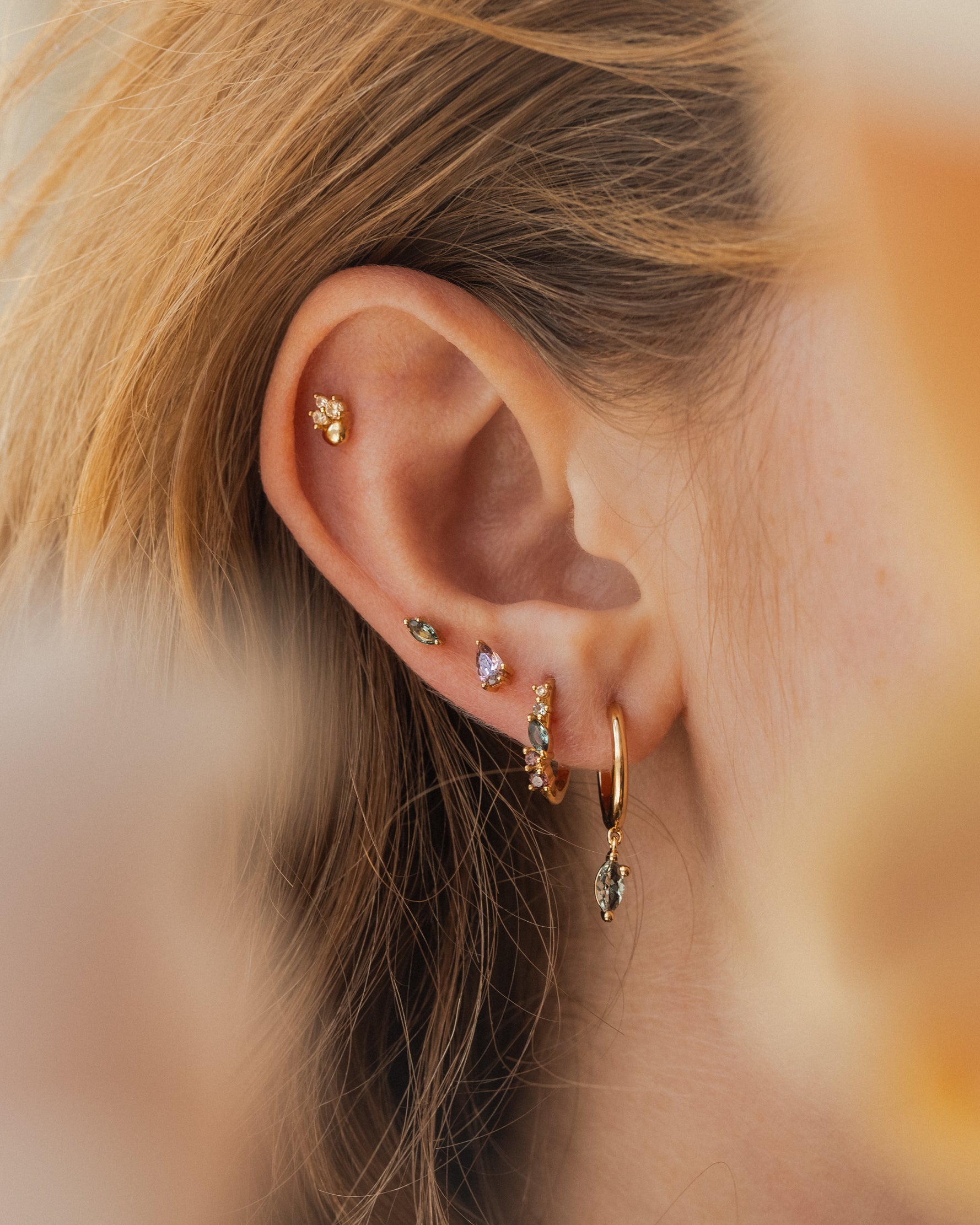 When you want that floral feeling without overly floral hoops. Use these to ground your look, then accent with a sprinkling of mismatched studs (our favorite way to wear them!).