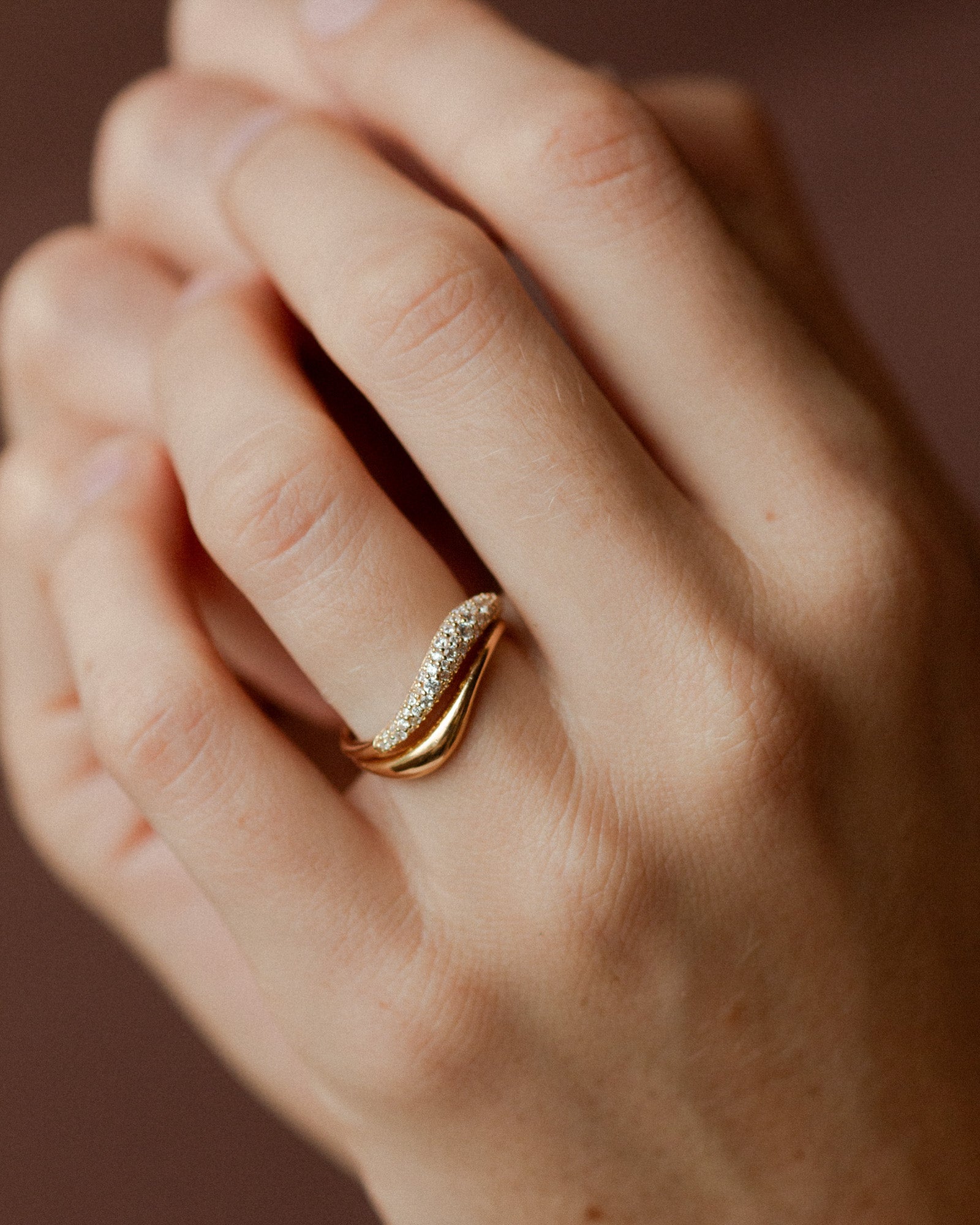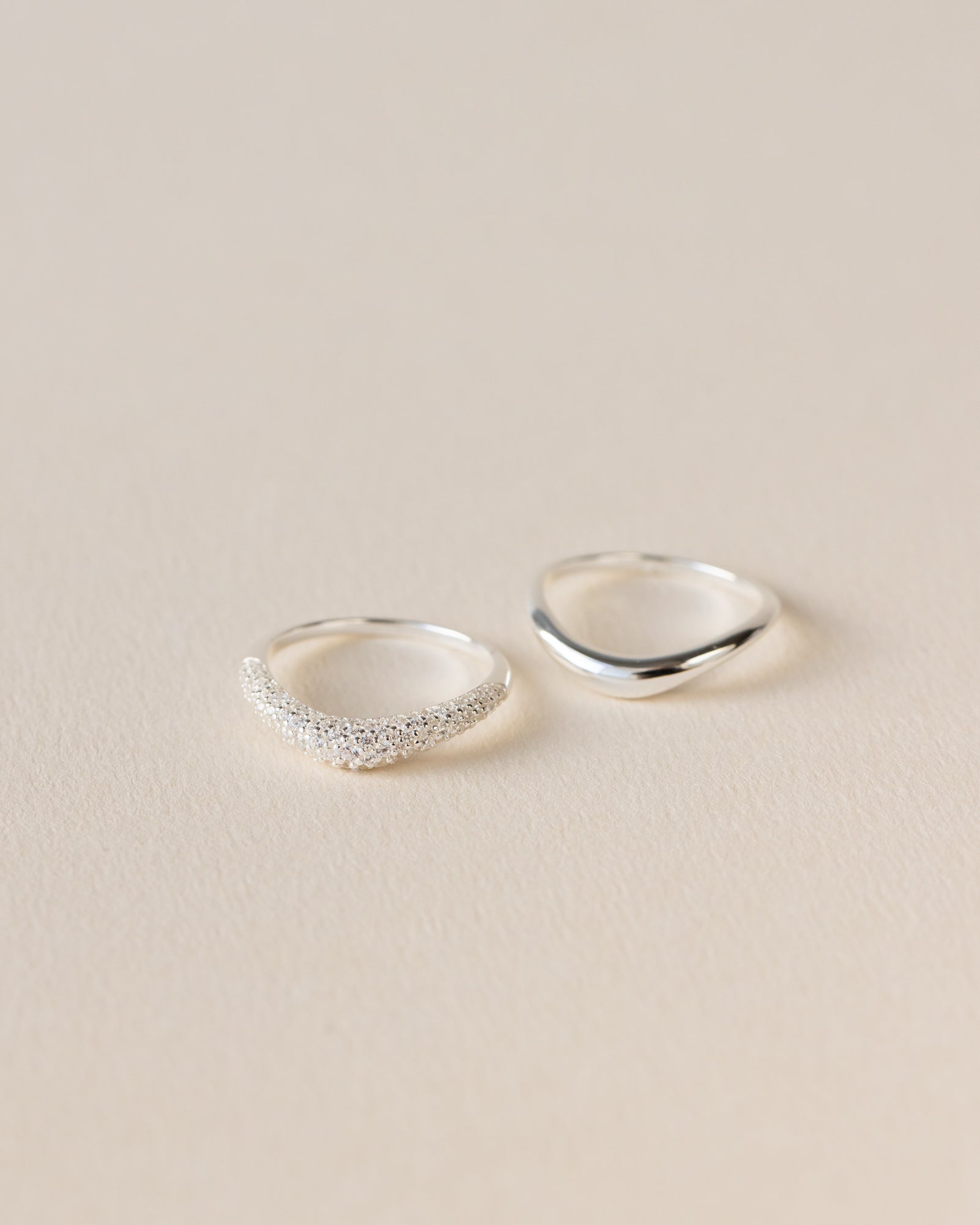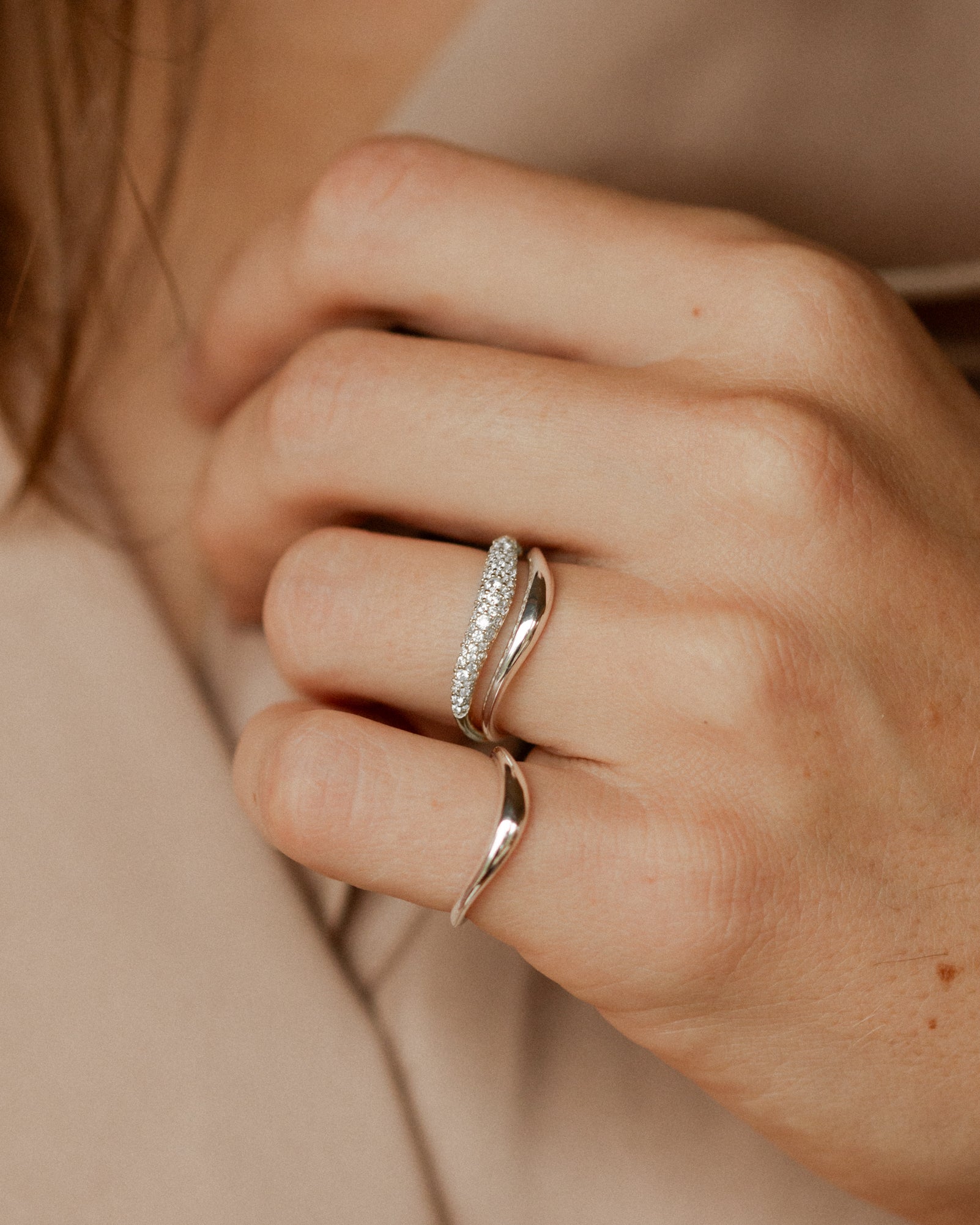 Choose one ring size for both rings. Want two different ring sizes? Shop the Flow Ring and Pavé Flow Ring separately!
