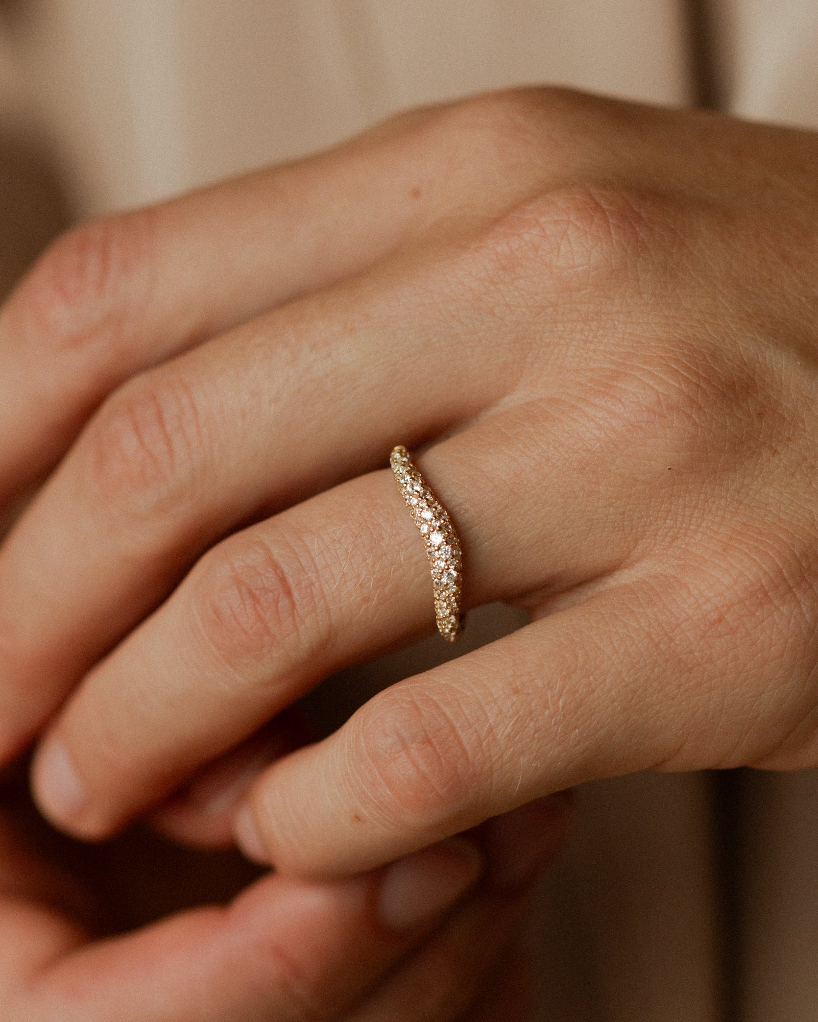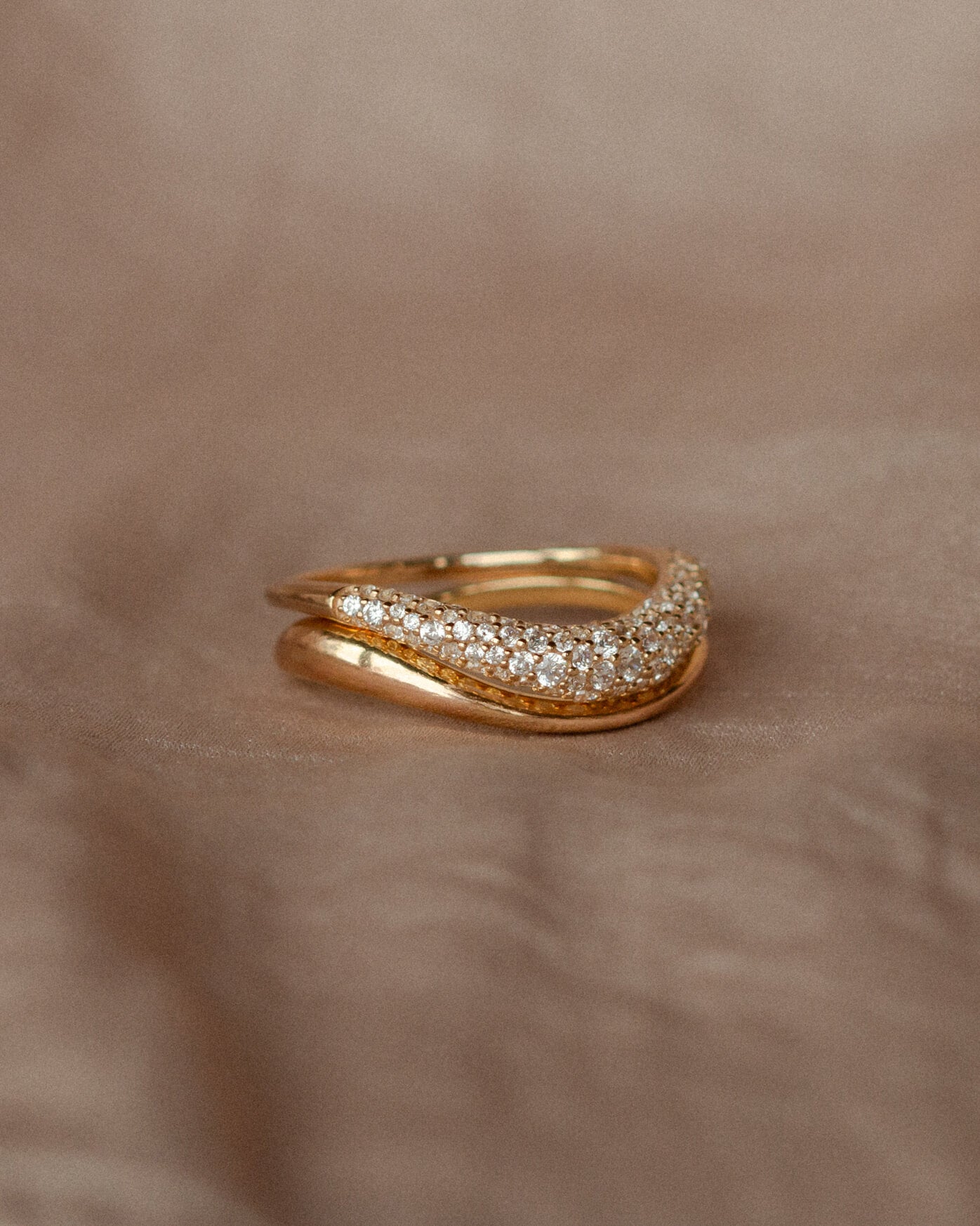 Get in the flow with two nesting rings: one pavé and one classic. Because what’s life without a little sparkle?